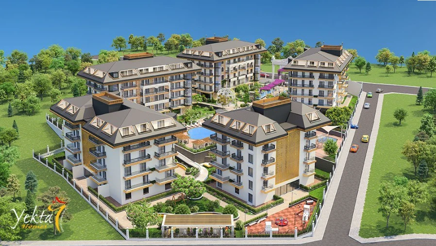 Yekta Golden Valley es un moderno complejo residencial de clase premium ubicado en el prestigioso distrito de Oba, en Alanya.
