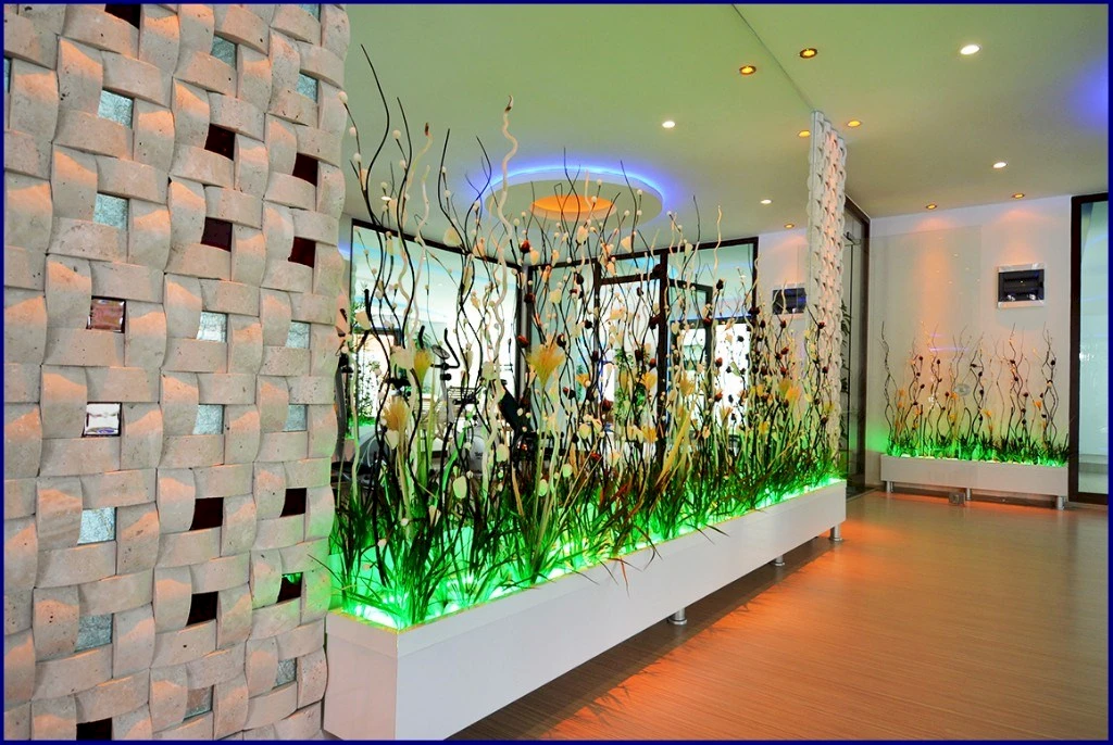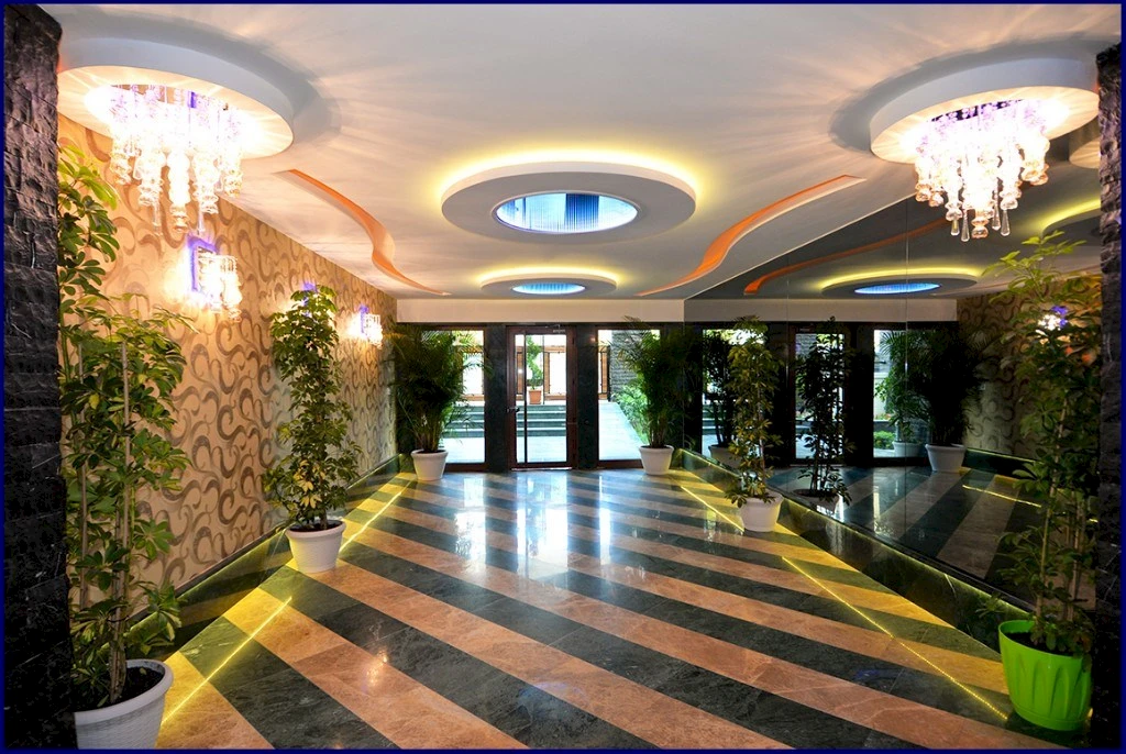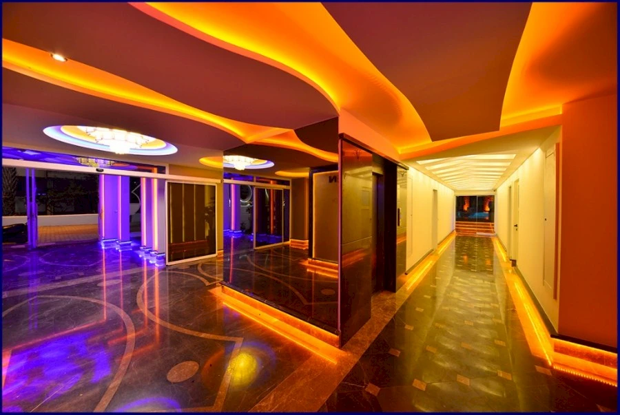 Las fachadas luminosas, los ventanales panorámicos y la iluminación decorativa aportan un estilo contemporáneo, mientras que el amplio vestíbulo con techos altos refleja confort y sofisticación.