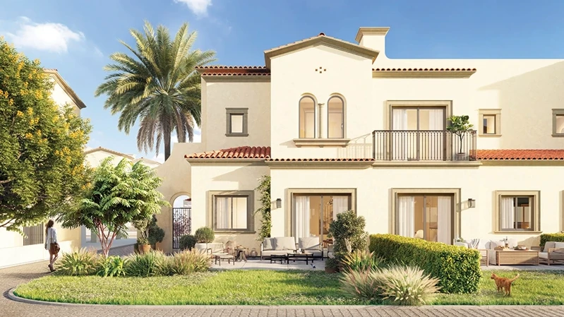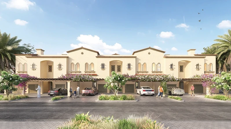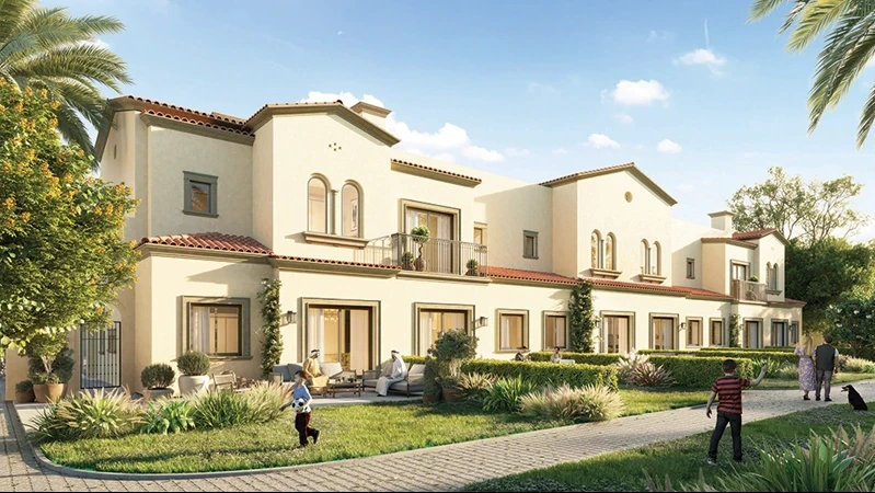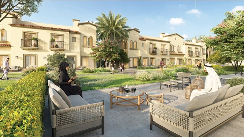 La comunidad incluye un Town Center con restaurantes, cafés y comercios, un lago central con senderos para caminar, un centro de bienestar, una casa club con piscinas y áreas deportivas, escuelas internacionales y mezquitas. Más de 5 millones de pies² de zonas verdes generan una atmósfera de confort y cercanía con la naturaleza.