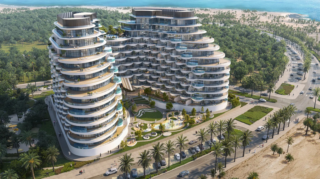 El complejo se inspira en la armonía de la vida costera y la dinámica del litoral. Las fachadas suaves y los amplios balcones proporcionan vistas panorámicas del Golfo Arábigo y luz natural en cada apartamento. El proyecto se centra en la privacidad, el confort moderno y el atractivo estético de los espacios habitables, combinando estilo y funcionalidad.