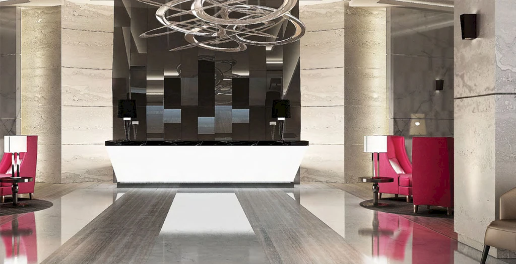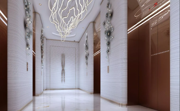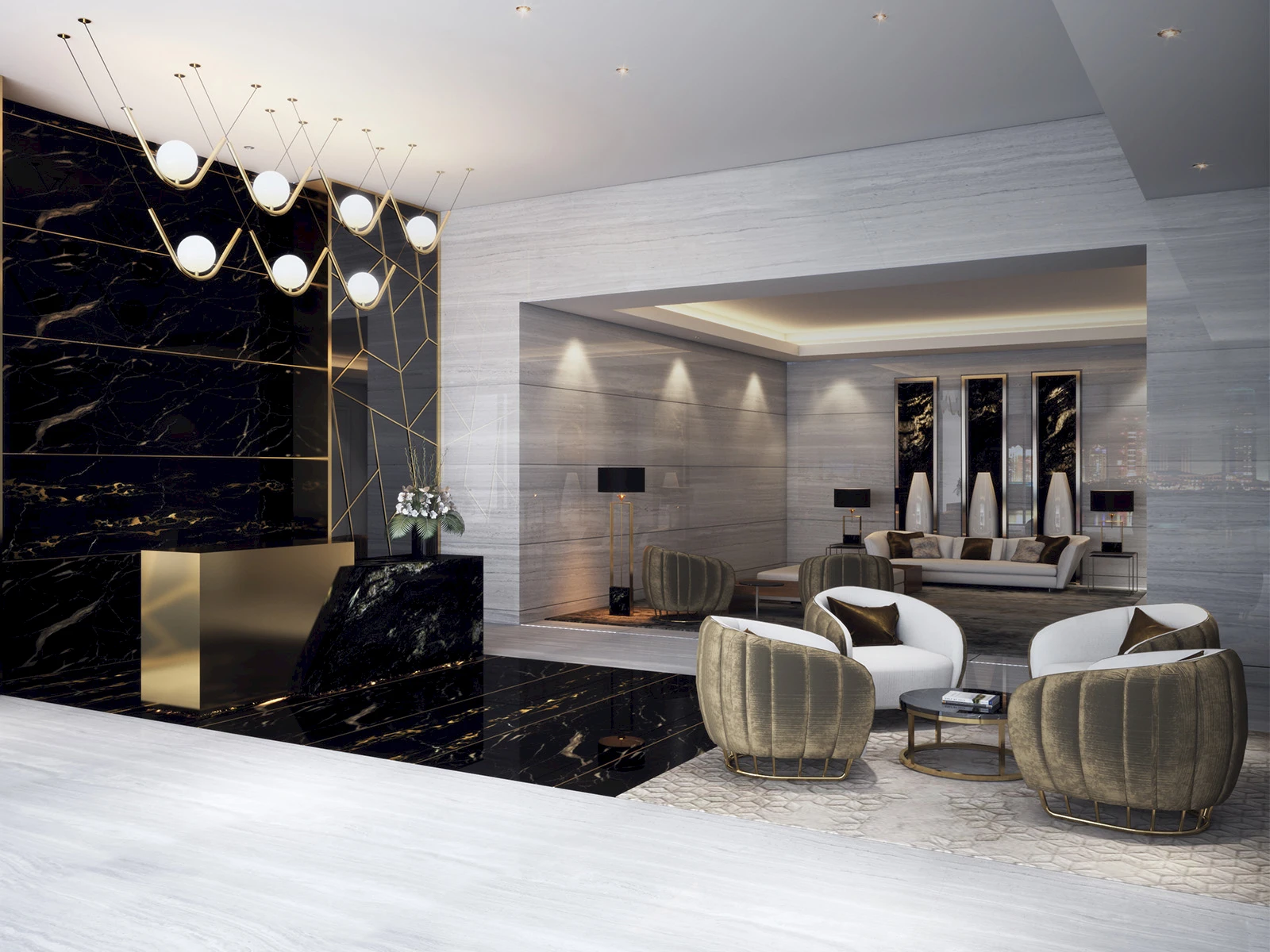 El complejo consta de varias zonas funcionales: una planta baja común con un elegante vestíbulo, una torre principal de 60 pisos con apartamentos residenciales y comodidades, y un podio separado en 13 niveles, donde se encuentra una lujosa piscina en la azotea.
