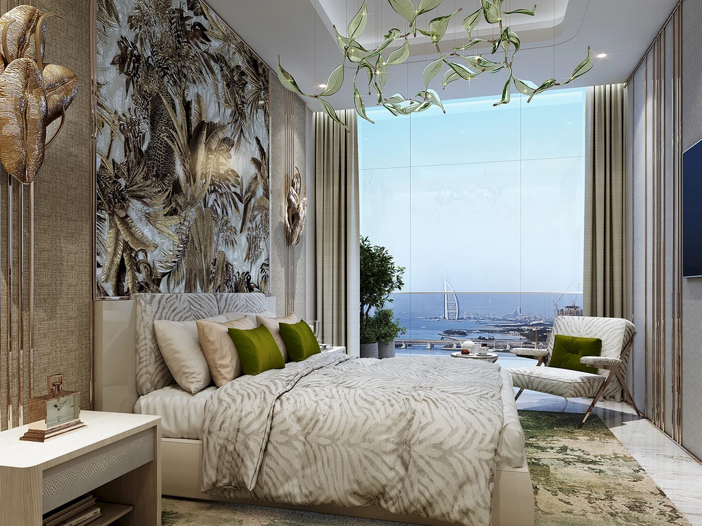 Las ventanas panorámicas y los amplios balcones proporcionan una gran cantidad de luz natural, enfatizando el elegante interior de cada habitación. Dependiendo de la ubicación, los residentes disfrutarán de impresionantes vistas del horizonte de Dubai o del Golfo Pérsico.