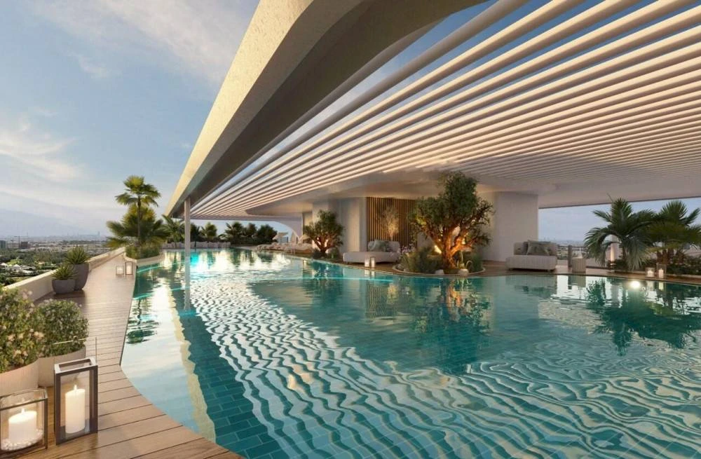 El paisaje urbano cambiante desde el amanecer hasta el atardecer forma un telón de fondo impresionante para la vida diaria. El complejo cuenta con domótica, purificación de aire, puntos de carga para vehículos eléctricos, cocinas totalmente equipadas con electrodomésticos integrados, servicio de conserjería, médico a domicilio, farmacia, cine al aire libre, cafetería, supermercado, áreas de juego infantiles, zonas para mascotas, piscinas separadas para niños y adultos, gimnasio moderno y un nivel comercial dedicado.