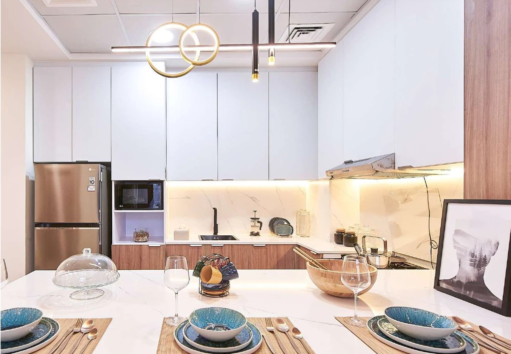 Los residentes disfrutan de servicio de conserjería, médico a domicilio, farmacia, cine al aire libre, cafetería, supermercado, piscinas separadas para niños y adultos, gimnasio, áreas recreativas infantiles y para mascotas, y un nivel comercial dedicado. Una paleta de colores neutros y sofisticados y acabados de pisos refinados crean la base perfecta para la expresión personal. Las ventanas con doble acristalamiento enmarcan vibrantes vistas exteriores, llenando cada residencia de calma y serenidad. Los dormitorios están diseñados con líneas limpias, almacenamiento incorporado e iluminación natural que brinda calidez a cada rincón, ofreciendo una fusión perfecta de comodidad y estética contemporánea.