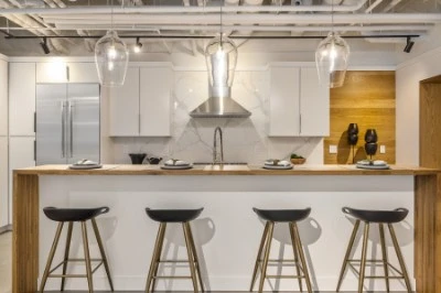 El proyecto Islington Street Condo consistió en convertir un espacio comercial de aproximadamente 195 metros cuadrados en un moderno condominio de estilo industrial con tres dormitorios y dos baños, ubicado en el corazón de Portsmouth. La vivienda cuenta con techos expuestos, suelos de hormigón pulido, acabados personalizados en madera natural, una chimenea de gas, una isla de cocina de gran tamaño y una zona de bar con fregadero.