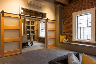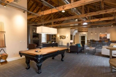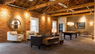Mostrar másEl proyecto del Exeter Club Room transformó un edificio centenario en deterioro, que durante décadas se utilizó como almacén y área de mantenimiento, en un lujoso espacio comunitario para los residentes de los 161 apartamentos del Exeter Mill. El diseño destaca los ladrillos expuestos y las vigas de madera originales, generando una atmósfera cálida y acogedora. Una chimenea central sirve como punto focal para una zona de descanso, mientras que la cocina de catering con barra, una gran mesa de estilo rústico y varias áreas de conversación aumentan la funcionalidad del espacio. También se incluyó una sala independiente para reuniones privadas y cenas.