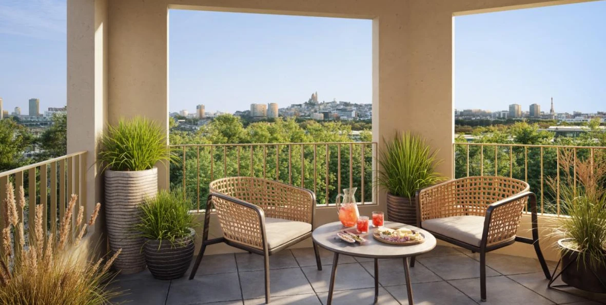 Все квартиры имеют собственное внешнее пространство: балкон, лоджию, террасу, зимний сад или приватный сад, а также доступ к общей террасе с видами на Париж.