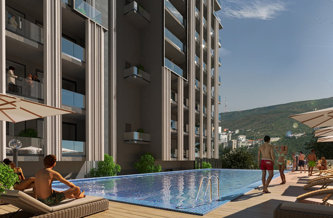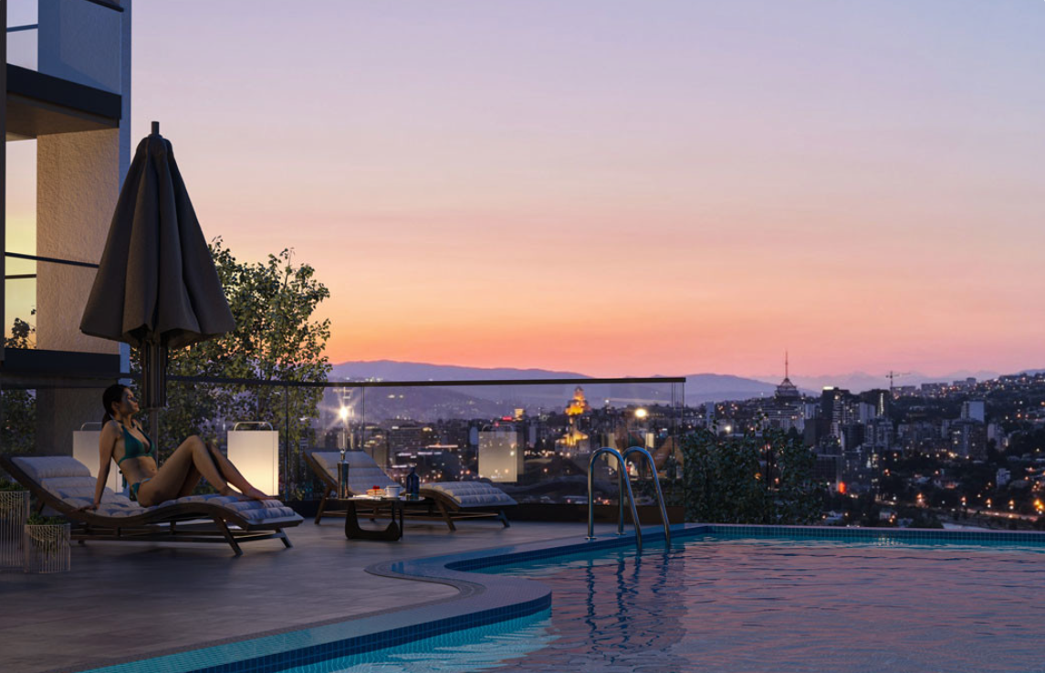 Площадь варьируется от 57 до 180+ м², а планировки продуманы так, чтобы максимально эффективно использовать пространство. Панорамные окна открывают живописные виды на Тбилиси и его окрестности, наполняя помещения светом и создавая ощущение простора.
