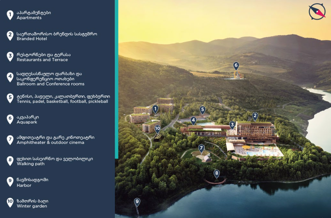 Le Meridien Sioni Lake Resort & Spa — это уникальный курортный комплекс международного уровня, разработанный девелопером Archi в партнёрстве с брендом Le Meridien. Проект объединяет формат апарт-отеля, современную архитектуру и инфраструктуру премиум-класса.