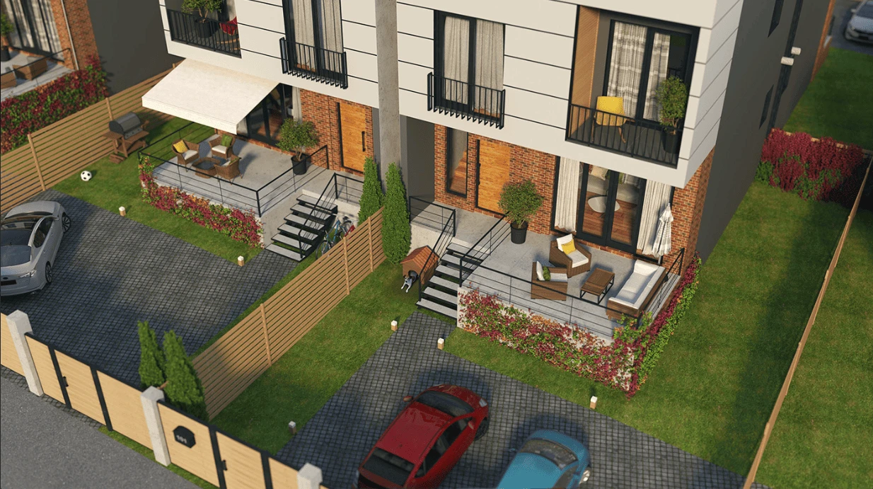 Каждый таунхаус в жилом комплексе оснащен надежным фундаментом, монолитным железобетонным каркасом и наружными стенами из четырехкамерных блоков с дополнительной теплоизоляцией. Первый этаж фасадов украшен кирпичной кладкой, верхние этажи окрашены. Лестничные марши и веранды покрыты морозоустойчивой антискользящей керамической плиткой, гарантируя безопасность передвижения.