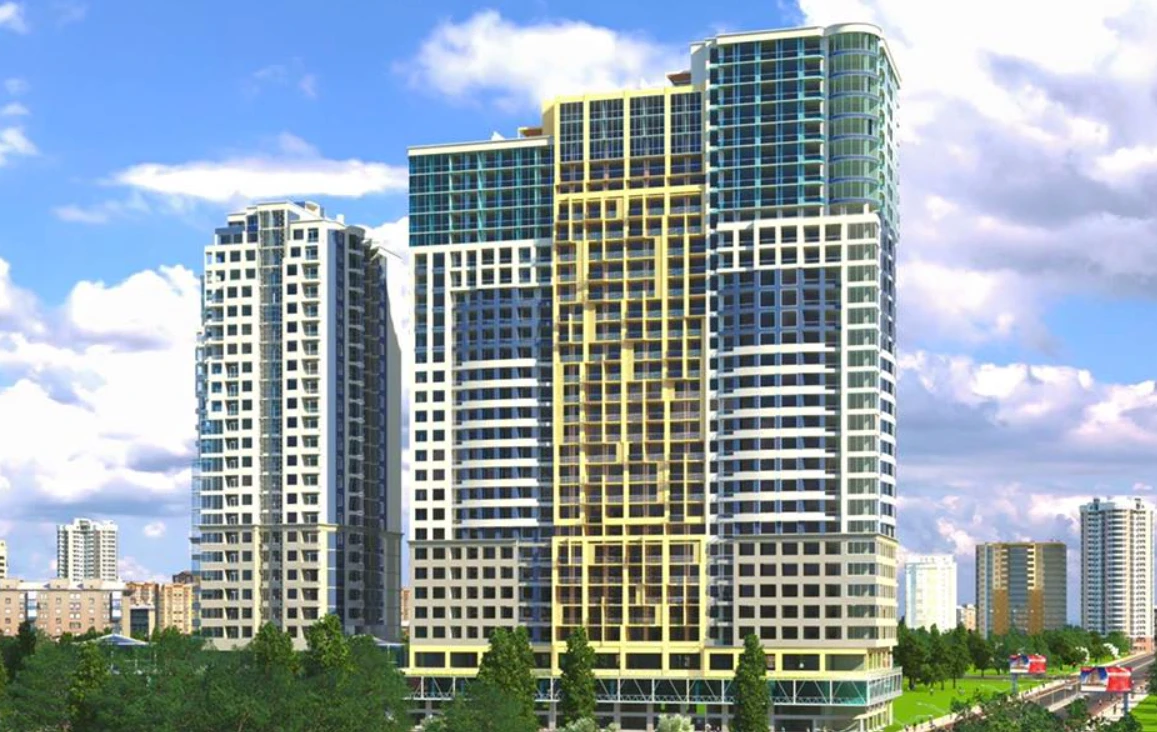 Здание комплекса насчитывает 25 этажей и выполнено в современном стиле с акцентом на простоту форм и удобство для жителей.