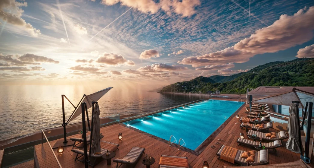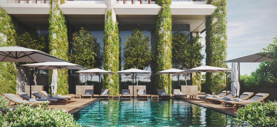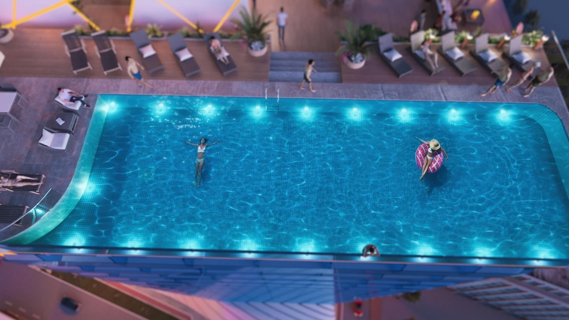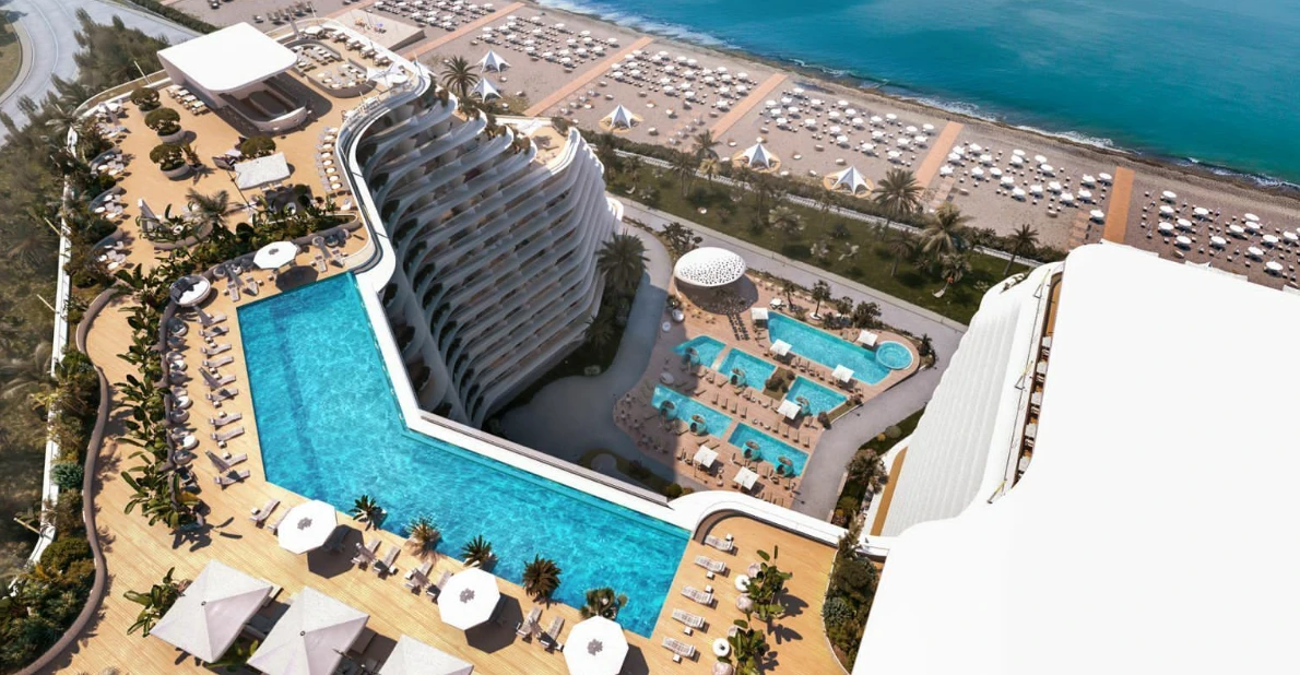 Инфраструктура комплекса включает частный пляж с развитой инфраструктурой; пять бассейнов, среди которых панорамный бассейн на крыше, крытый бассейн и три бассейна в саду; точки питания, представленные тремя ресторанами, двумя лобби-барами, баром на крыше и летним баром на пляже; СПА-центр с множеством оздоровительных услуг; фитнес-центр; теннисный корт; конференц-зал и переговорные комнаты, оборудованные микрофонами, экранами и прочим оборудованием для бизнес-встреч; помещение для мероприятий; кафе-библиотеку; три лаундж-зоны; мини-кинотеатр; бильярдную; детскую зону отдыха; медицинский кабинет; аптеку; брендовый маркет; 11 пассажирских лифтов и три сервис-лифта, а также комнаты для персонала. Кроме того, гости могут воспользоваться круглосуточным сервисом и мобильным приложением для управления арендой, где есть личный кабинет с календарем бронирования, подробностями о доходах, возможностью оплаты коммунальных услуг и чатом с менеджером гостиницы.