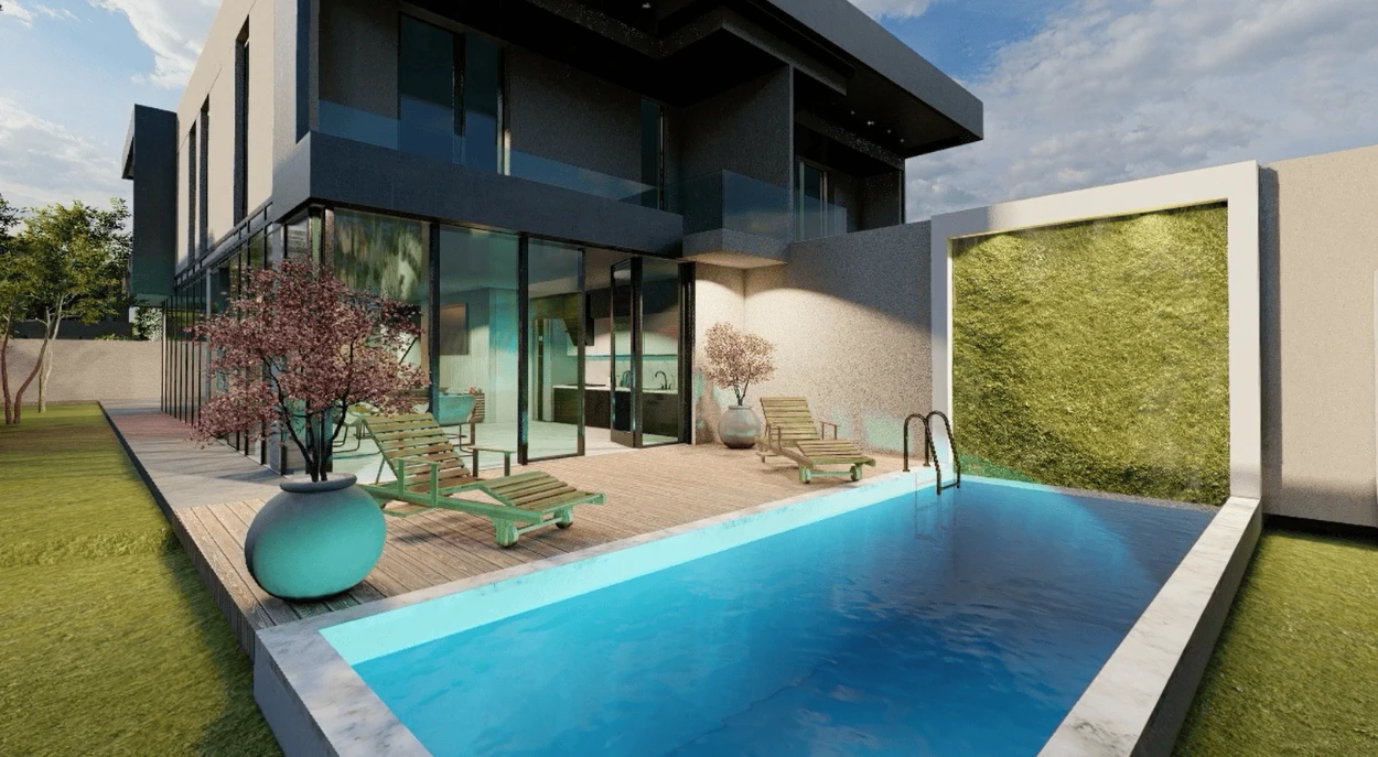 На каждом участке возможно строительство двухэтажной виллы площадью 240 м², с собственным участком и садом 225 м². Планировки продуманы таким образом, чтобы обеспечить максимум комфорта, приватности и естественного освещения. Владельцы смогут адаптировать внутреннее пространство под собственные потребности.