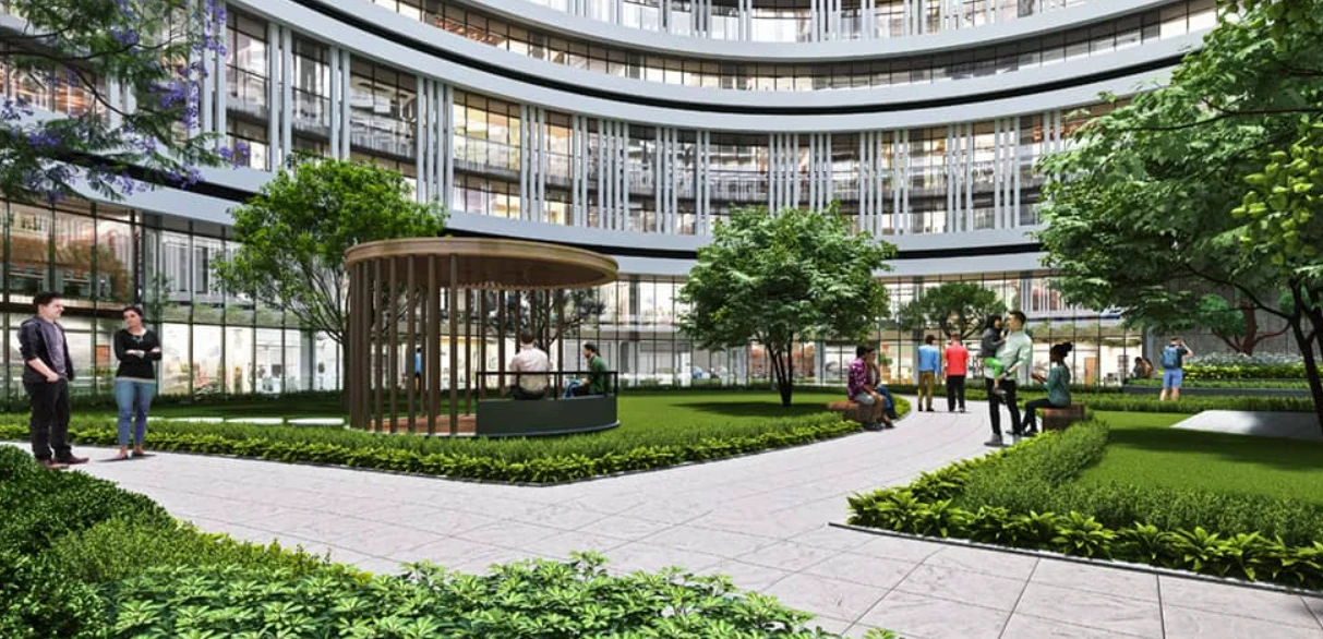 Проект занимает площадь свыше 100 000 м², из которых около 80 000 м² отведены под благоустроенные зеленые зоны и рекреационные территории. В состав комплекса входят:
