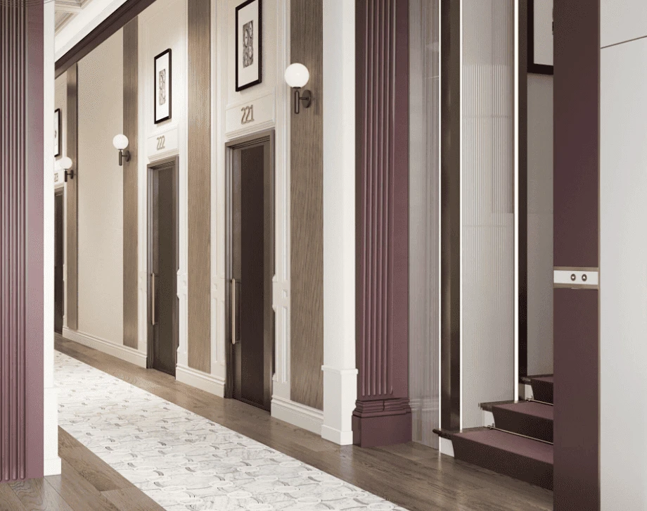 Проект включает всего 24 апартамента площадью от 33 до 89 м² в трёхэтажном здании с высотой потолков от 4,5 метра — что создаёт ощущение простора, света и дворцовой роскоши даже в компактных планировках. Каждому владельцу предоставляется закреплённое машиноместо в количестве 1:1.