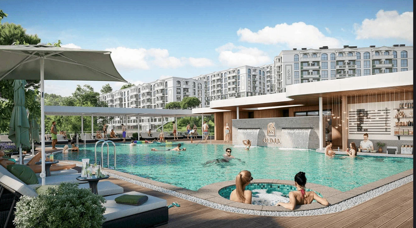 Инфраструктура Olivia превращает жизнь в курортный ритуал: круглогодичный открытый бассейн, летний кинотеатр, мини-гольф, площадка для падел-тенниса, воркаут-зона, терренкур длиной 300 метров и множество детских площадок. Для велосипедистов предусмотрены специальные дорожки, парковки и зоны хранения. В каждом доме — подземный паркинг с зарядками для электромобилей, а на свежем воздухе — стильный коворкинг.