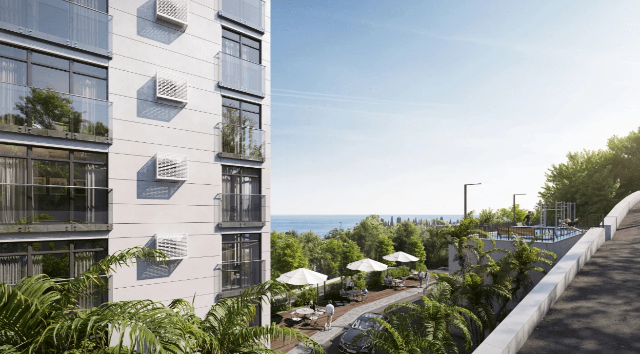 Квартиры площадью от 25,30 до 54,30 м² — от уютных студий до практичных двухкомнатных — предлагают панорамные виды на горы и море. Территория комплекса закрыта, охраняется и на 30% покрыта озеленением, включая живописный оливковый сад площадью 1,8 гектара.