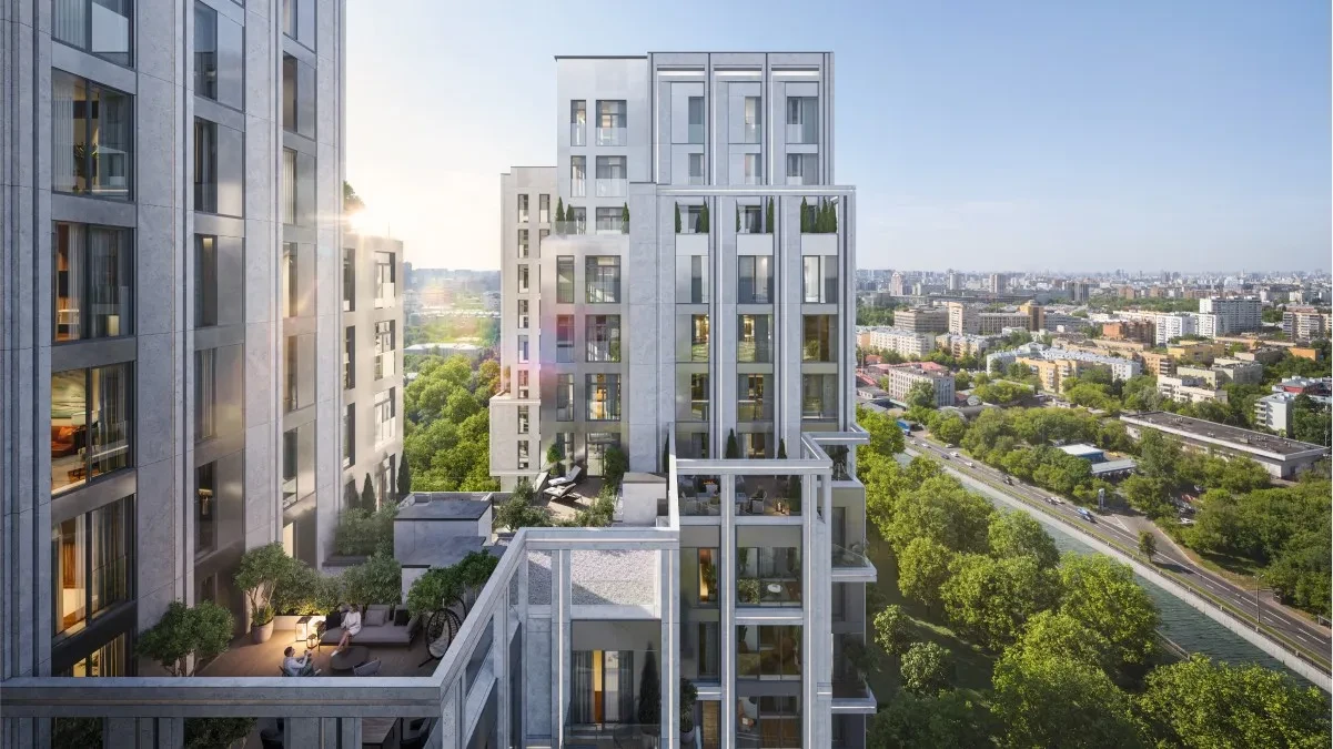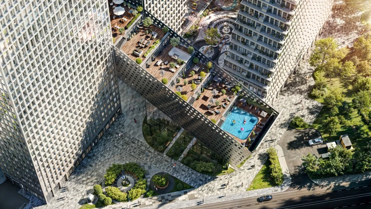 Комплекс включает четыре высотных корпуса с этажностью 33–35 этажей, разработанных KAMEN Architects. Современные фасады, панорамные окна и продуманные планировки создают светлые и уютные пространства. Внутри квартала предусмотрены благоустроенные дворы, зоны для прогулок, рекреации и общие террасы, что формирует полноценную среду для жизни и отдыха.