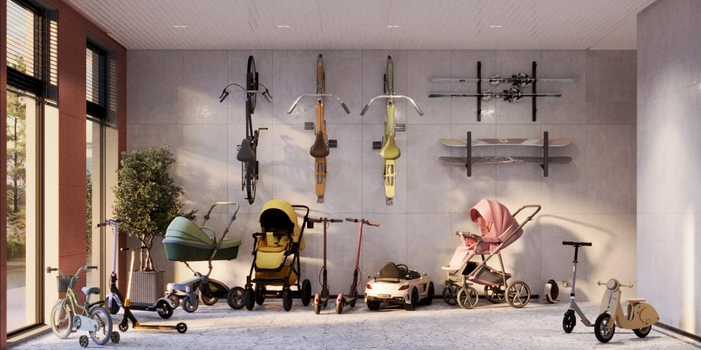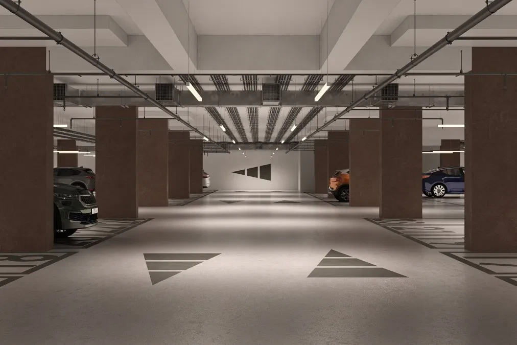 Внутренние общественные зоны включают Sky Area на верхнем уровне, рекреационные и спортивные пространства, лаунж‑зоны и площадки для общения жителей. Продуманная организация дворов и общих зон обеспечивает безопасное и удобное пребывание для всех членов семьи.