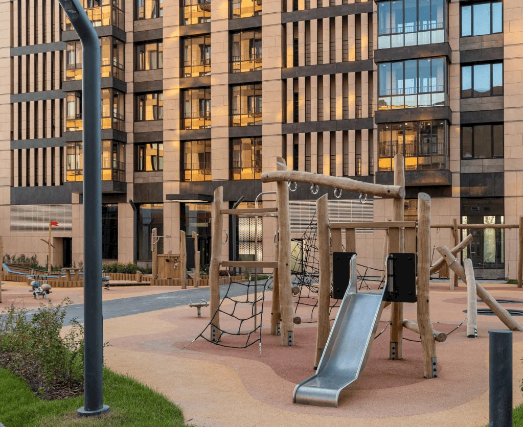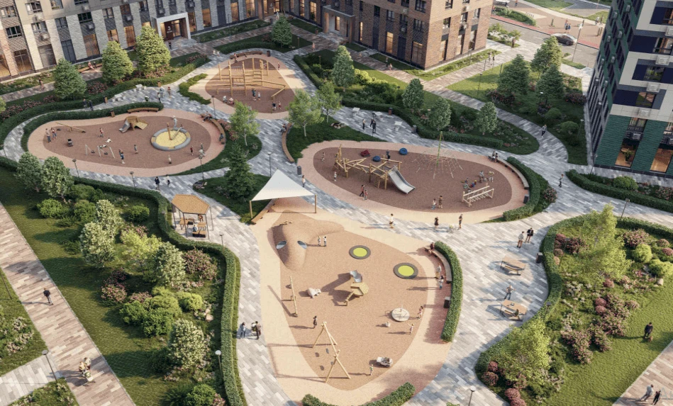 Детские площадки, безопасные дворы, игровые зоны для разных возрастных групп.