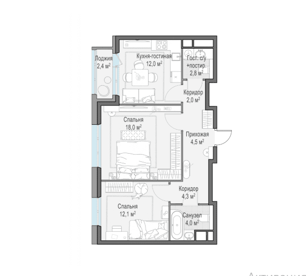 Квартиры площадью от 24,6 до 105,8 м² подходят как для молодых пар, так и для больших семей.