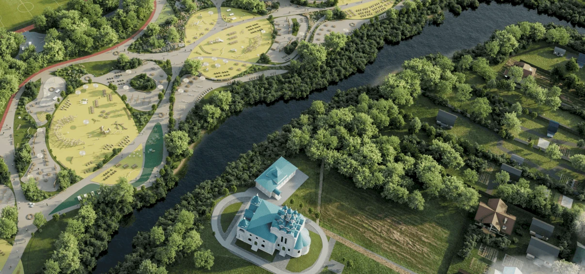Ландшафтный дизайн разработан международным бюро Gillespies, чьи проекты известны по всему миру. Благодаря их работе природная красота местности подчёркнута, а каждая зона — от тихих аллей до активных площадок — функциональна и эстетична. Для любителей движения здесь предусмотрены воркаут-зоны, современные детские площадки и веломаршрут.