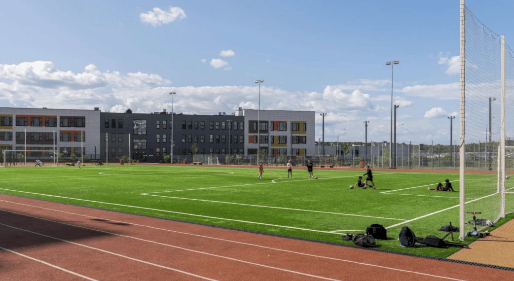 2 школы (на 2650 ученических мест, в том числе со стадионами и футбольными полями)