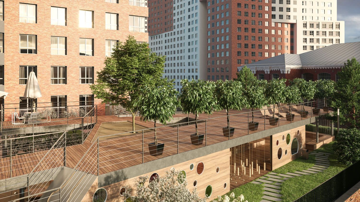 Архитектурное решение: арт-квартал в стиле творческого объединения PRIDE — смещённая геометрия фасадов, эффектные цветовые решения, качественные материалы.