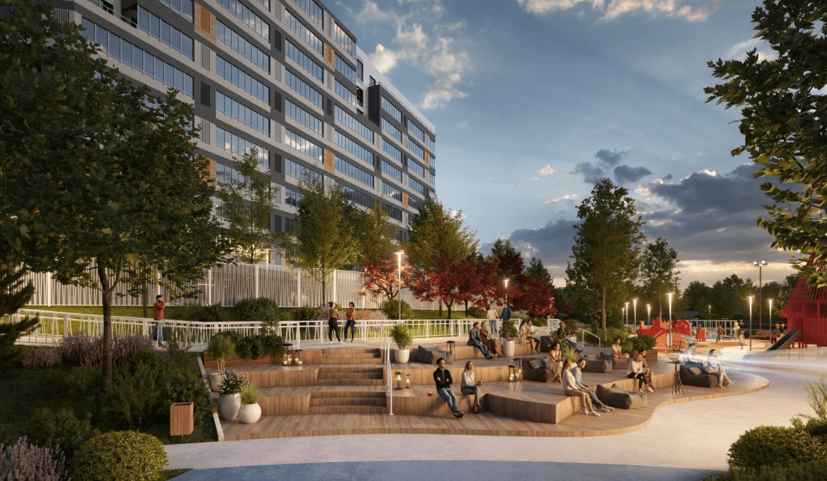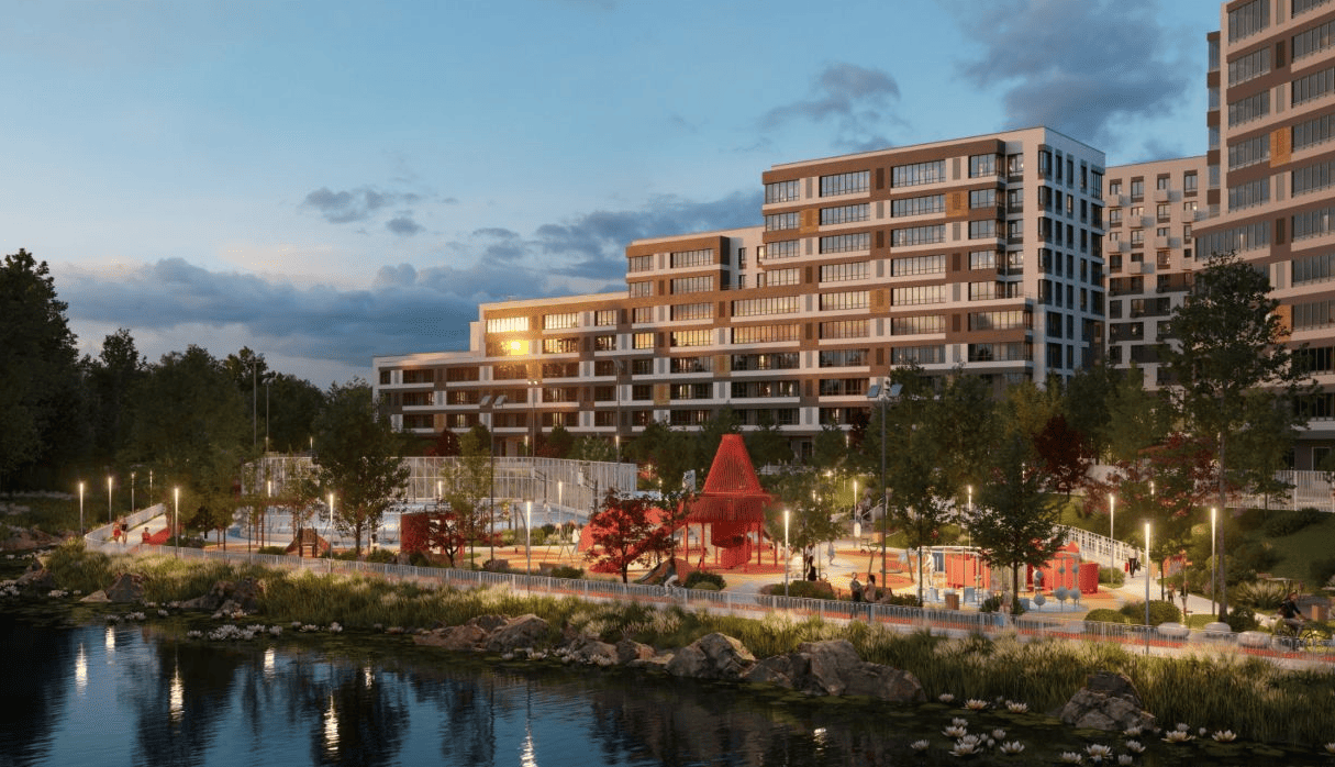 Территория окружена зелёными массивами и природными водоёмами: свежий воздух, пение птиц, прогулки и семейные пикники становятся неотъемлемой частью повседневной жизни.