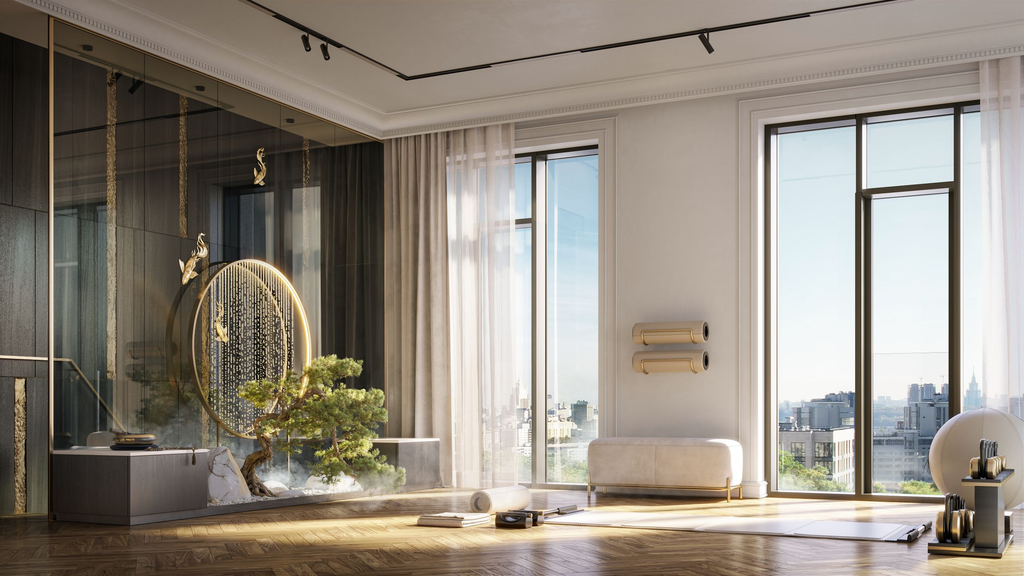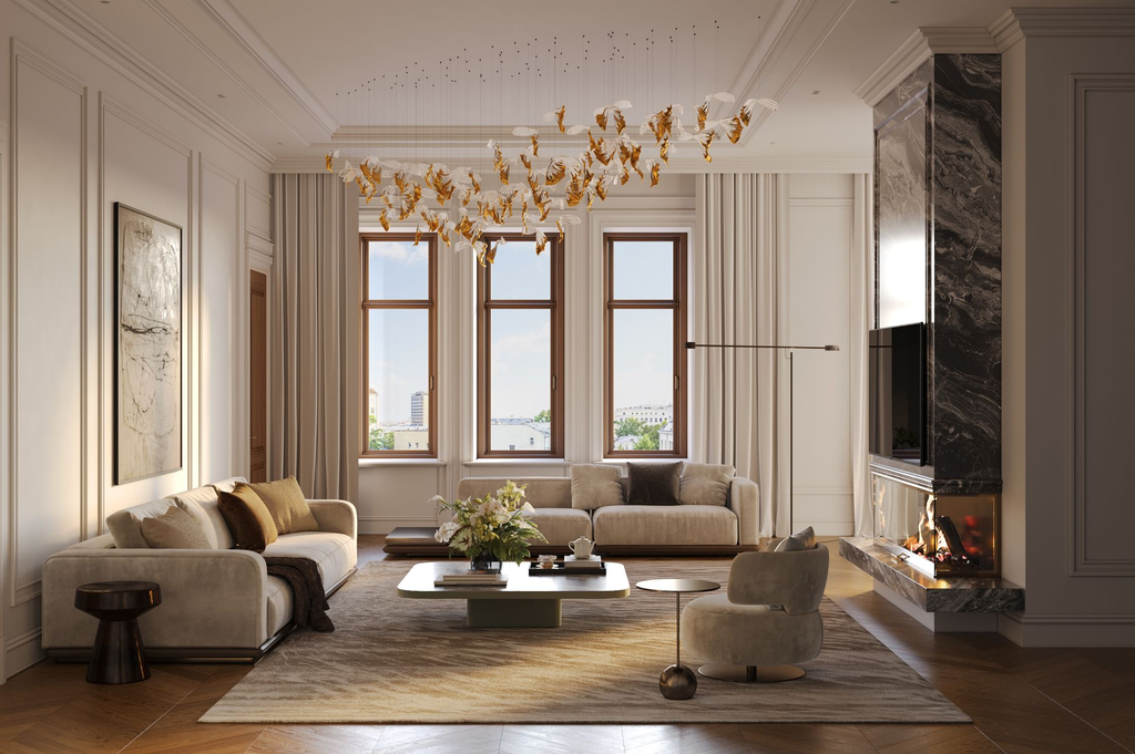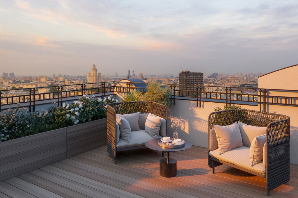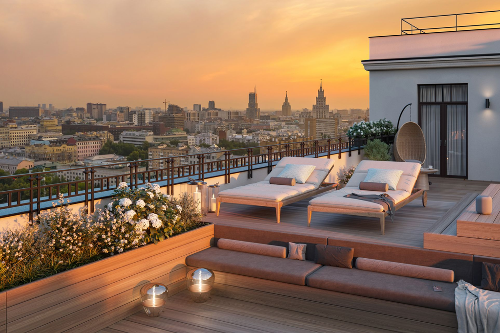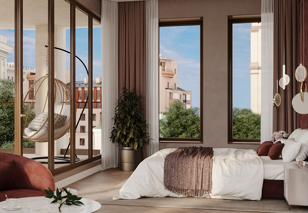 Исторические здания дополняются современными технологиями комфорта: панорамные окна, высокие потолки до 5,93 м, просторные планировки и индивидуальные террасы создают эксклюзивную атмосферу.