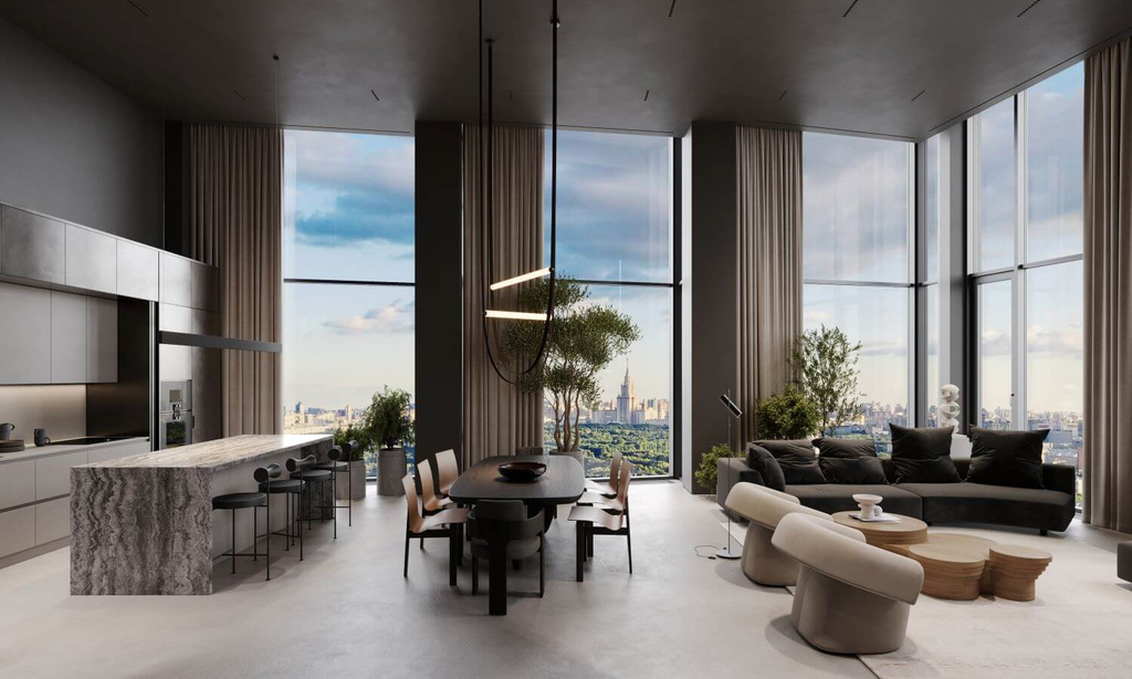 Особенностью проекта являются панорамные виды на знаковые достопримечательности Москвы, включая Кремль, храм Христа Спасителя и архитектурные ансамбли центральных районов города.