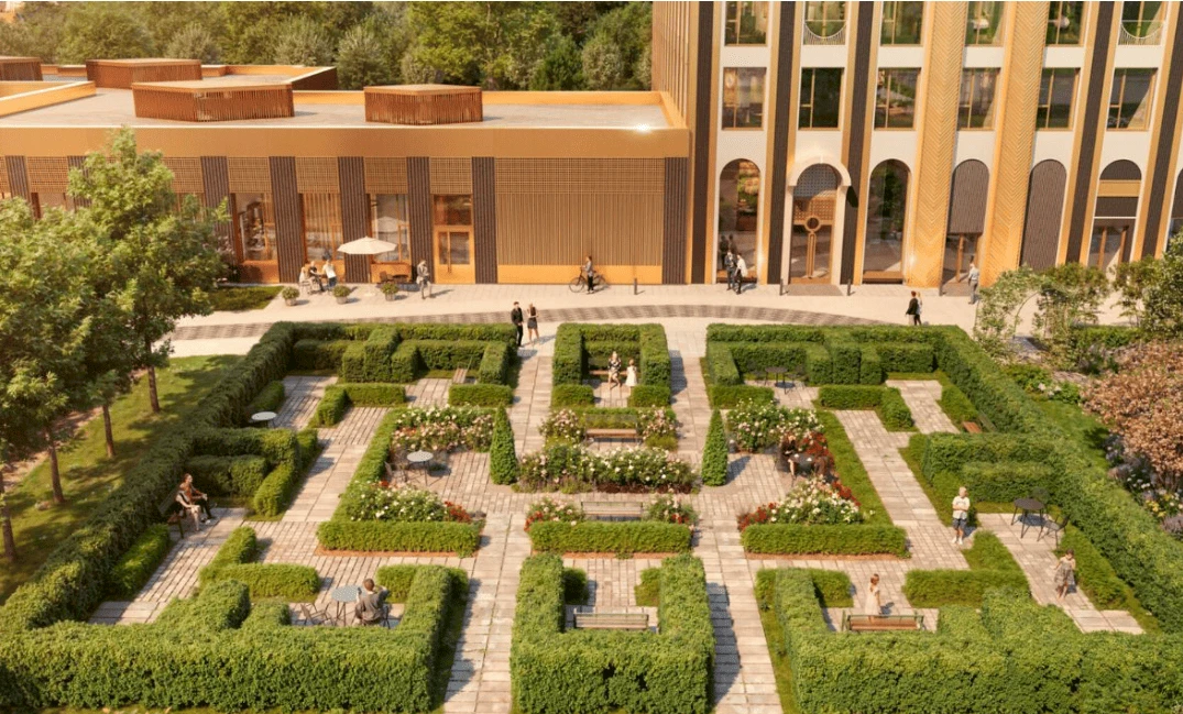 Проект разработан архитектурным бюро GAFA и представляет собой гармоничный синтез традиционных канонов ар-деко и смелых современных решений. Особое внимание уделено внутреннему двору: он выполнен в духе английского паркового искусства и предлагает жителям оазис уединённой природы в центре мегаполиса.
