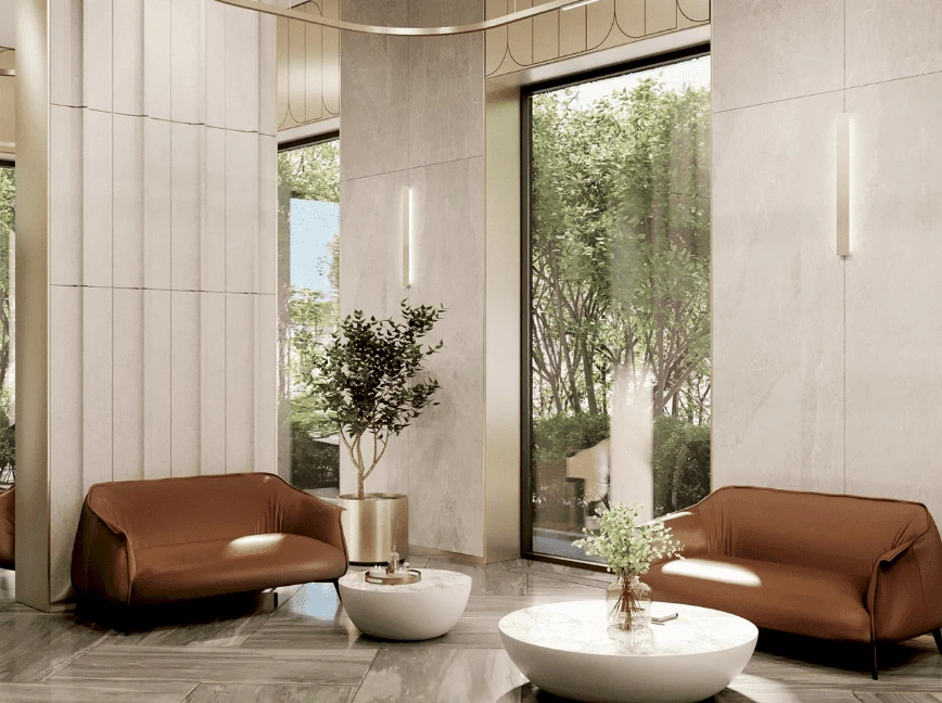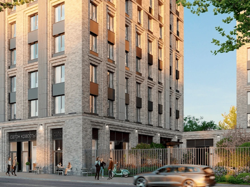 Архитектурное решение комплекса подчёркивает эстетику современного городского жилья: входные группы выполнены в авторском стиле, лобби отличаются благородной отделкой и высокими потолками (3 метра).