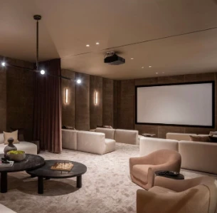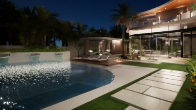 Площадь виллы включает 4 просторные спальни, потолки до 5 метров и центральную гостиную длиной 17 метров, соединённую с террасой, бассейном 12×6 метров и ухоженным садом. Планировка дополнена полностью оборудованной кухней и баром, лаунжем в стиле whiskey lounge, кинозоной и массажным кабинетом.