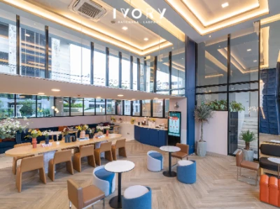 Строительство было завершено в августе 2022 года девелопером Asset Wise Co., Ltd. На территории комплекса созданы условия для полноценного отдыха и активного образа жизни: стильный лобби лаунж, коворкинг-кафе для работы и встреч, терраса с бассейном и лежаками, джакузи с массажной функцией, круглосуточный тренажёрный зал и прогулочная дорожка на крыше. Жильцам доступен трансфер до ключевых точек района, что делает жизнь в IVORY по-настоящему комфортной.
