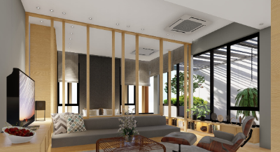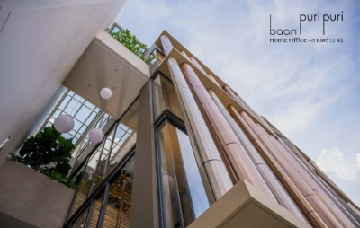 Показать большеПроект Baan PuriPuri: Home Office Ладпрао 41 предлагает продуманное архитектурное решение, в котором рабочие зоны на нижнем и верхнем уровнях соединены в единое вертикальное пространство, обеспечивая логичную циркуляцию и зонирование. В отличие от типичных домов-офисов с освещением только с фасада и тыла, здесь применена система боковых проёмов, благодаря которым дневной свет проникает во все части здания. Центром композиции выступает открытое зелёное пространство, плавно переходящее внутрь и становящееся частью общего архитектурного ритма. Сейчас зелень только начинает формироваться — деревья недавно высажены, и скоро лианы спустятся вниз, воплотив в жизнь изначальный замысел: создать органичный, живой объём, в котором свет и природа становятся частью интерьера.