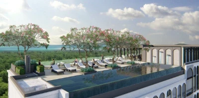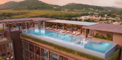 В инфраструктуру входят инфинити-бассейн, видовая крыша с лаунж-зоной и тренажёрным залом. Из некоторых апартаментов открываются панорамы на Андаманское море или статую Большого Будды на горе.
