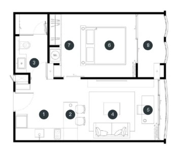Каждое жильё оснащено полноценной кухней, просторной гостиной с диваном-кроватью, а также большим балконом, где можно наслаждаться живописными восходами и закатами.