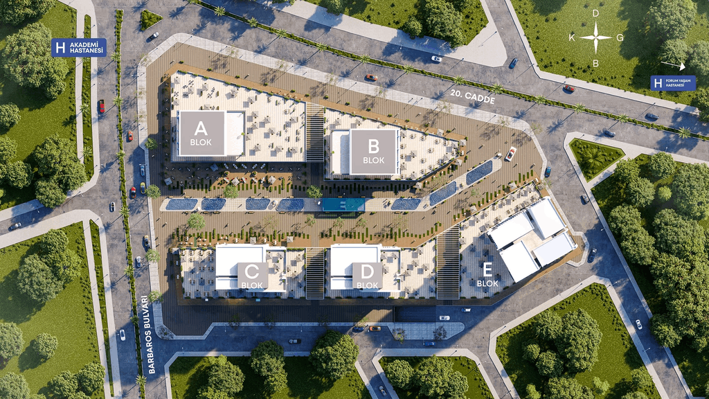 Проект расположен на 2-й кольцевой дороге, одной из главных транспортных артерий города, всего в 150 метрах от торгового центра Mersin Forum. Такое расположение обеспечивает удобство доступа к основным направлениям и объектам городской инфраструктуры.
