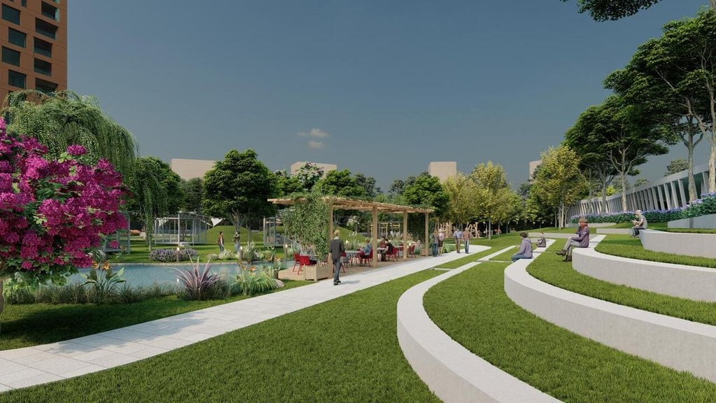 Территория комплекса спроектирована как закрытое жилое пространство с ландшафтным дизайном, напоминающим ботанический сад. Жителям доступны крытые и открытые детские площадки, зоны отдыха, открытые и крытые бассейны, спортивный и оздоровительный центр.