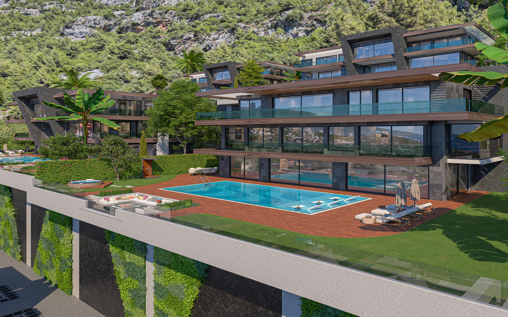 Комплекс расположен на возвышенности, благодаря чему из большинства квартир открываются впечатляющие виды на Средиземное море, историческую крепость Аланьи и Таврские горы, формируя особую атмосферу уединённости и статуса.
