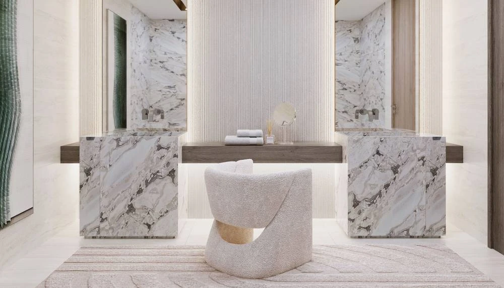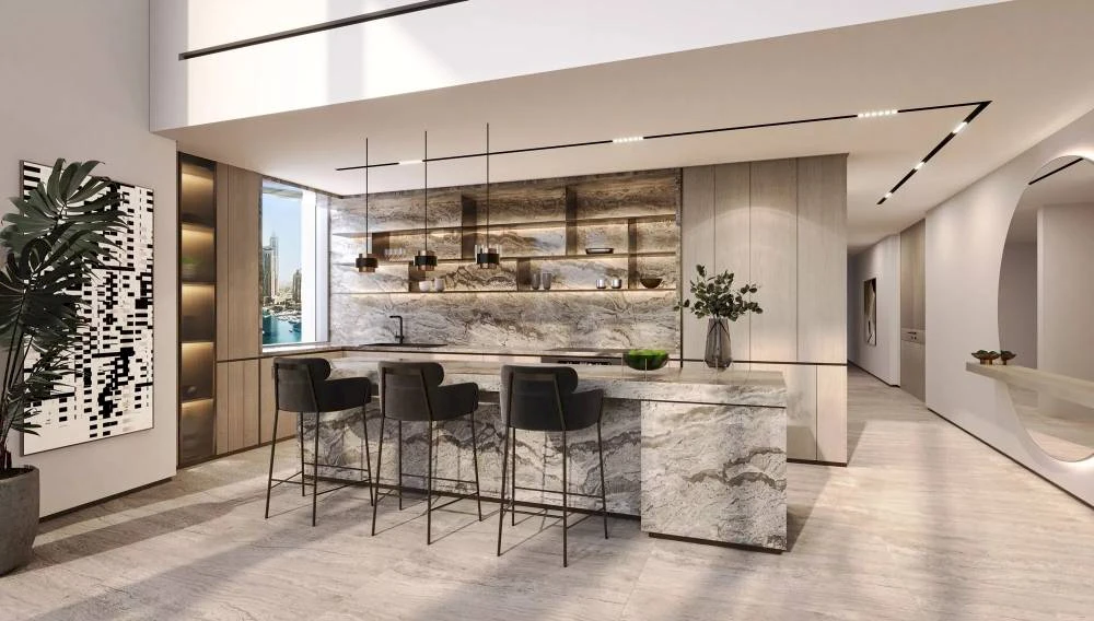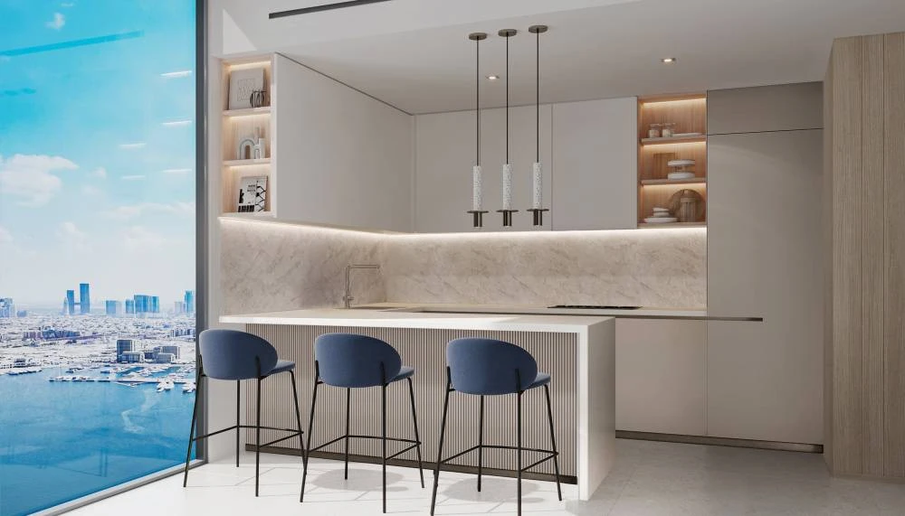 Каждая квартира спроектирована так, чтобы открывать панорамные виды на Аравийское море, побережье Джумейры, Rashid Yachts & Marina и городской пейзаж Downtown. Пространства с потолками высотой 3 метра и угловым остеклением создают эффект полного погружения, а открытая планировка формирует современную и функциональную среду.