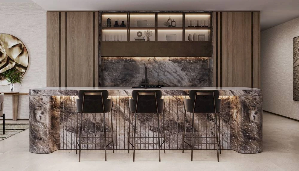 Жители могут наслаждаться видами на бирюзовую гавань с просторных террас и из инфнити-бассейна. В комплексе предусмотрены зоны для отдыха, открытый кинотеатр, лаунж для резидентов и площадки для барбекю. Проект включает квартиры площадью от 69 до 1419 м². Срок сдачи — четвертый квартал 2026 года.