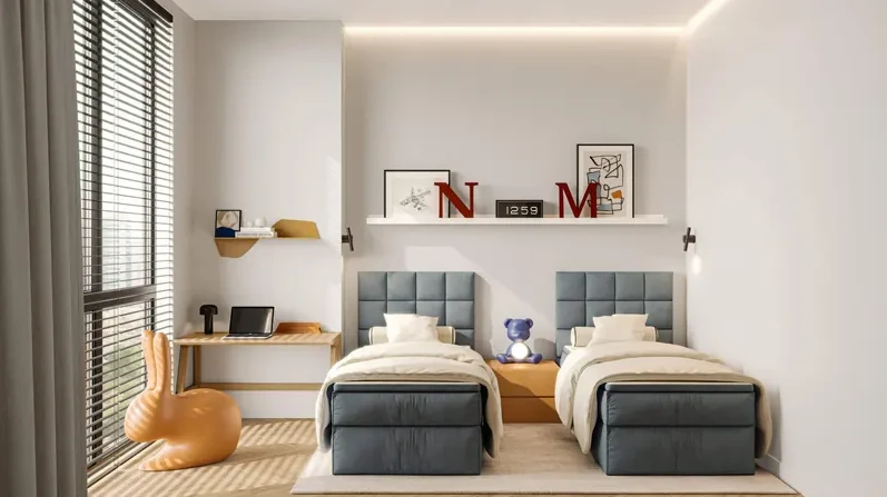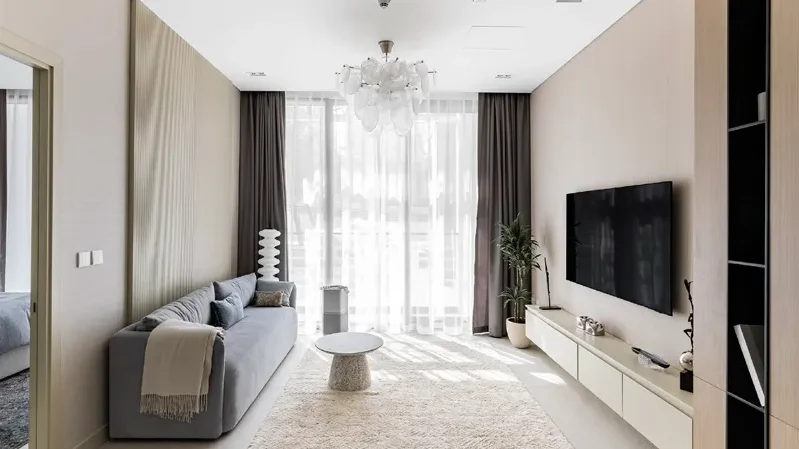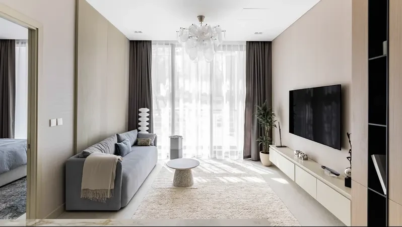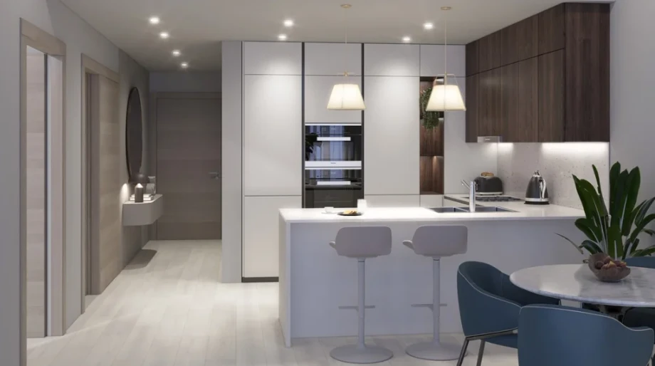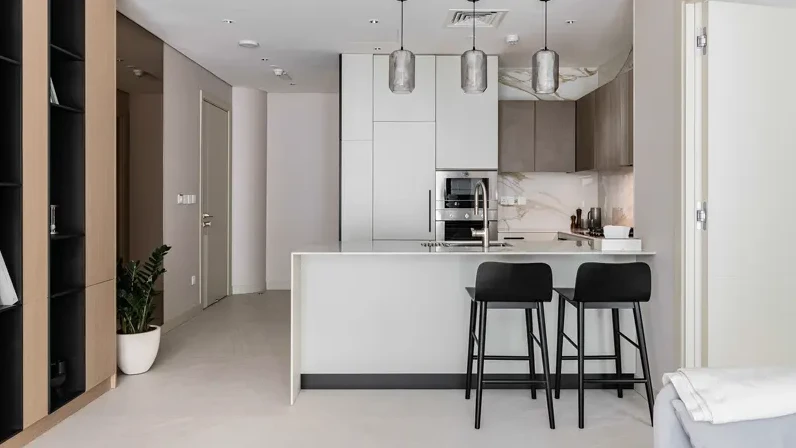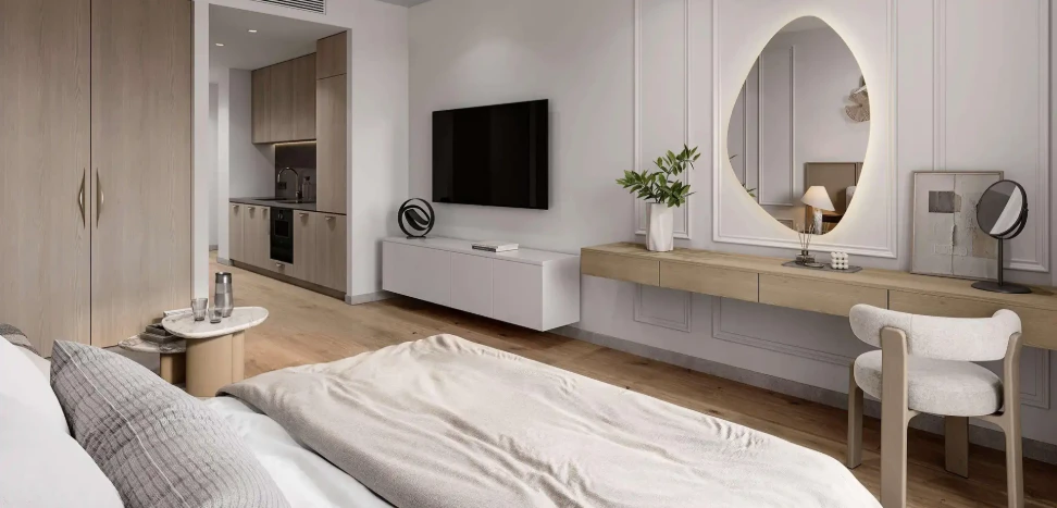 Апартаменты представлены студиями, а также квартирами с 1 и 2 спальнями, подходящими для индивидуального проживания, пар и семей. Интерьеры выполнены в современном стиле, где сочетаются функциональность, уют и эстетика — пространство, которое одинаково комфортно и для жизни, и для отдыха.
