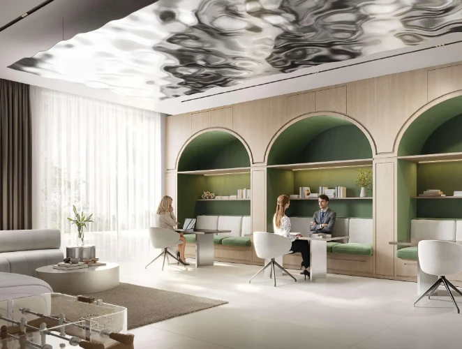 Жить здесь — значит каждый день ощущать атмосферу курорта. Бескрайний infinity-бассейн, зоны для йоги и медитации, расслабляющая сауна и тщательно продуманные общественные пространства создают условия для восстановления сил, уединения или душевного общения с близкими.