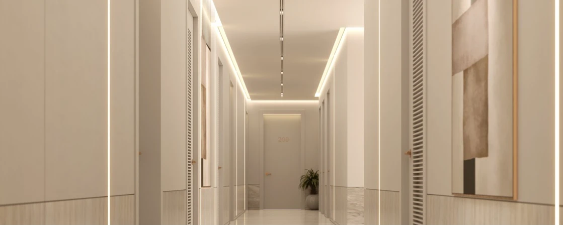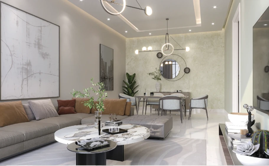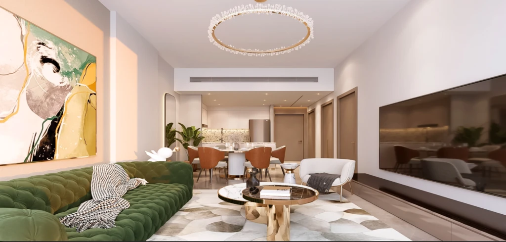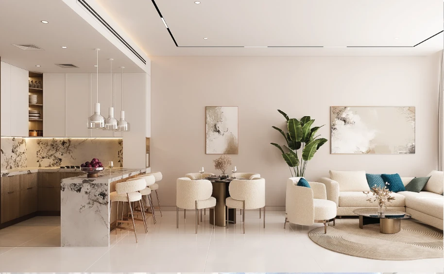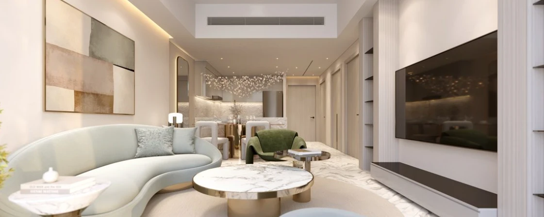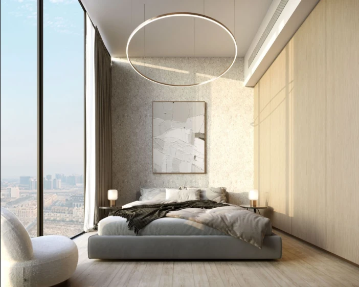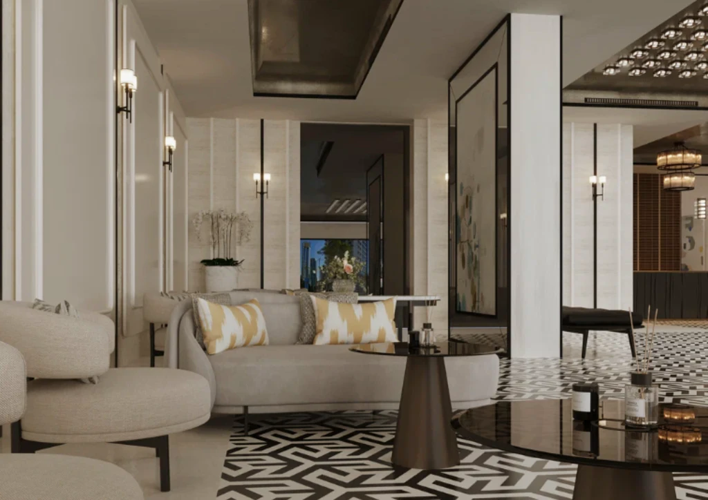 Архитектурная концепция и интерьеры. Tiger Sky Tower сочетает в себе современную структуру с элементами эмиратской культуры. Интерьеры спроектированы для роскошной жизни с качественными материалами и панорамными видами на горизонт Дубая.