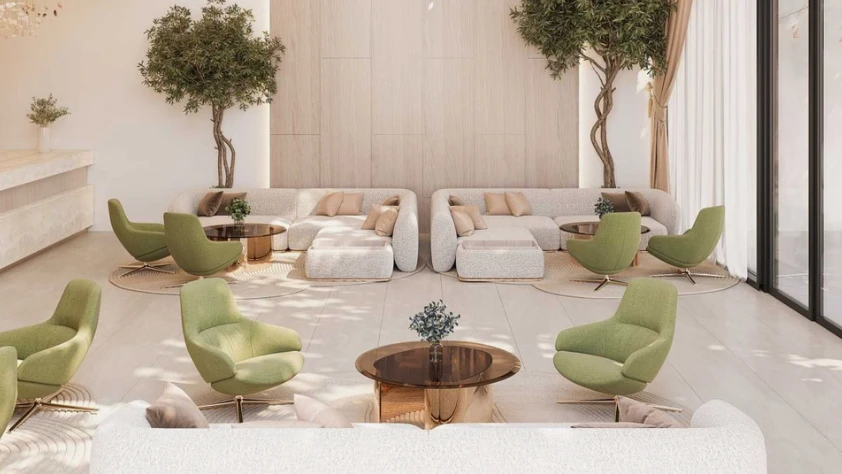 Уникальная концепция дизайна интерьера создает особую атмосферу, обеспечивая комфортную и безопасную жизнь. В каждом жилище имеются балконы и сады, откуда открываются великолепные виды на Пальмовый остров и горизонт Дубая.