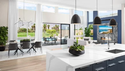Показать большеNola at Escena — это закрытое гольф-сообщество класса люкс в Палм-Спрингс, Калифорния, где представлены 40 одноэтажных домов с собственными бассейнами и современной архитектурой. Дома спроектированы в открытой планировке с внешним оформлением в современном, интернациональном и стиле середины XX века. Рядом расположены элитные магазины, изысканные рестораны, аэропорт, парки и пешеходные тропы, что делает возможным круглогодичную жизнь в стиле курорта. Покупатели могут персонализировать интерьер своих домов в студии дизайна Toll Brothers. Каждое жильё отражает фирменное качество строительства компании Toll Brothers. Жители получают доступ к общественному гольф-клубу Escena и ресторану Escena Lounge & Grill, где можно отдыхать, ужинать и устраивать приёмы. Площадь домов варьируется от 211 до 223 квадратных метров, предусмотрено от двух до трёх спален, от двух с половиной до трёх ванных комнат и пристроенный гараж на две машины. Район входит в школьный округ Palm Springs Unified.